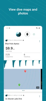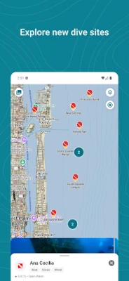 • Viewing and sharing ratings and photos of your dive sites with the community