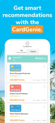 Try the most popular free travel app and our rewards credit card tracker for Android. Make free travel a part of your life and track your points and miles earned for your favorite airline and hotel. Our CardGenie offers personalized recommendations and shows the best offers available.