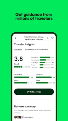- Save time with AI summaries, which gives you a quick overview of what travelers are saying