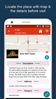 Apart from this, Xi'an Travel & Explore guides you Why, When and How to visit various places in Xian with precise location on the detailed Map. There are two ways to explore this app - Category view and EduBank favorite places view. Pin your destinations and get the routes on the Map. Not only this, you can see exactly how the places look like with Street View integrated in this app. The app also has a feature to Rate and write Review/Experience regarding entity(s) through Login. Your Travel experience and rating will help the user community.